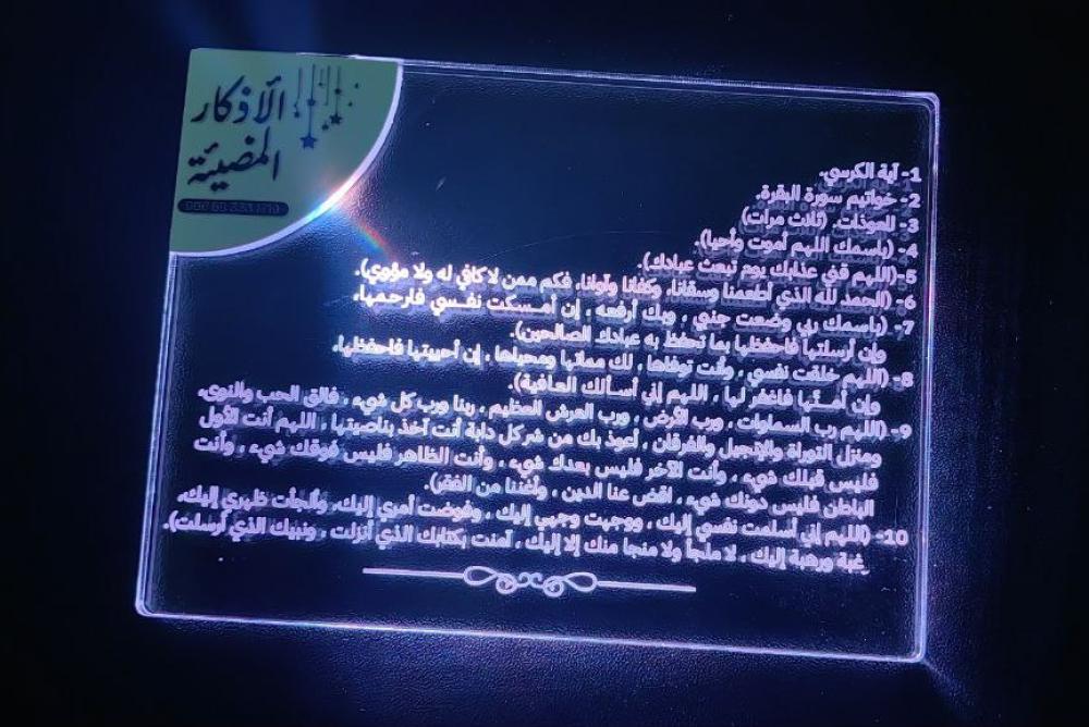 الأذكار المضيئة - أول بطاقة أذكار نوم مضيئة بالعالم - اكريلك قوي .إضاءة عالية 7 ألوان نور - هدية للوالدين - هدايا اسلامية - كروت أذكار قابلة للشحن