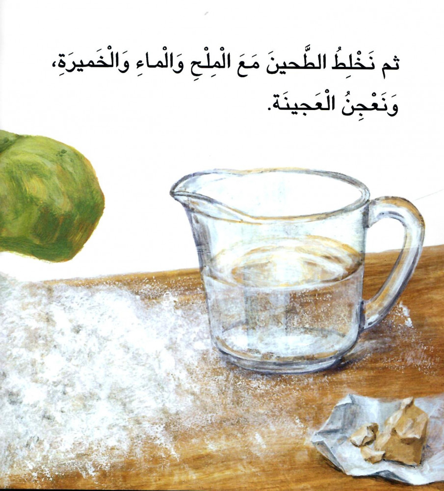 أحب أن أخبز مع أمي. فللخبز الطازج رائحة جدٌ شهية . وطعمه من أشهى ما يكون! نصنع الخبز من حبوب القمح المفيدة. ينثر الفلاحون بذور القمح ، حين تكون الأرض طرية مبتلة .