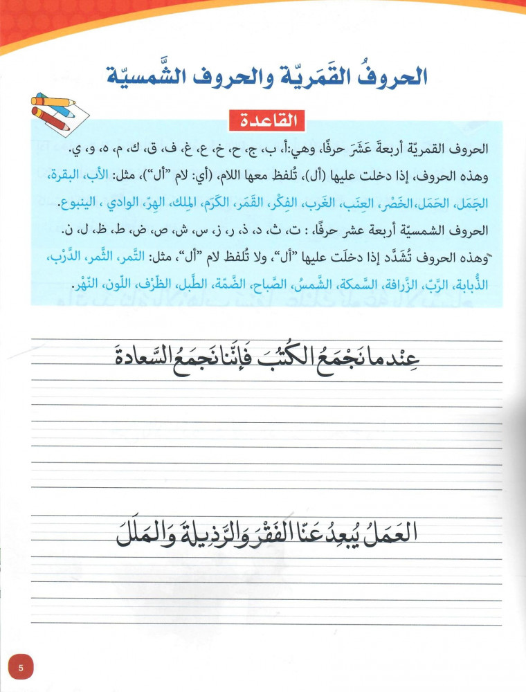 تهدف هذه المجموعة من الكتب إلى تعليم التلميذ كتابة الحرف في حال انفراده وبكل أشكاله. ويركّز على الحروف المقرونة بحرف المدّ (الألف والواو والياء). ... كما تتناول مسائل متفرقة في الخط.