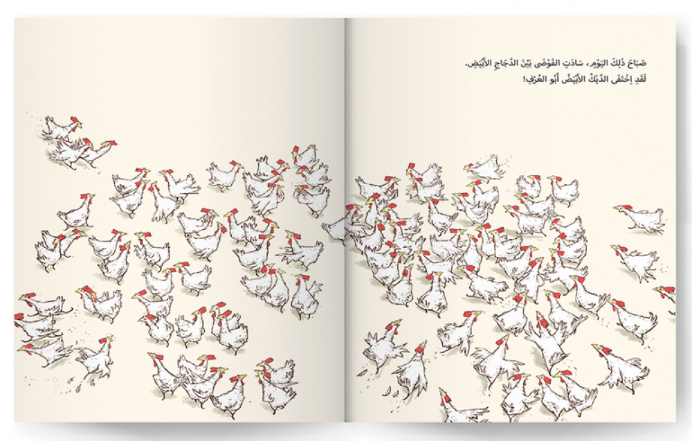 في أحد الصباحات، حلّت فاجعة بحظيرة الدجاج..لقد اختفى الديك أبو العُرف، والدجاجةُ إخلاص أيضًا..