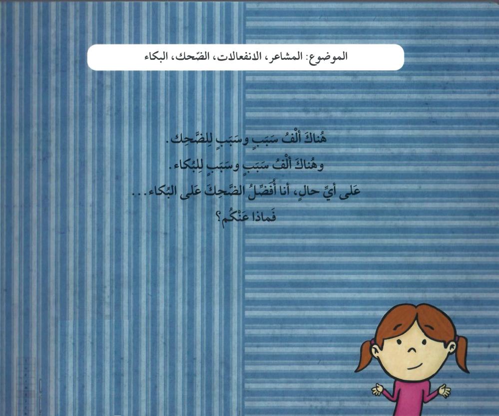 كتاب عن الضحك وأسبابه والبكاء وأسبابه، يصل إلى الطفل بشكل طريف من خلال مواقف من الحياة اليومية البسيطة التي يعيشها كلّ إنسان.