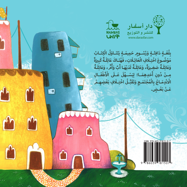 يتناول الكتاب موضوع اختلاف العائلات، فهناك عائلة كبيرة وأخرى صغيرة، وعائلة بأبٍ وأم وأخرى من دون أحدهما.